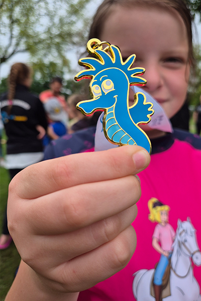 Heute bekamen alle 35 Schwimmanfänger und Schwimmanfängerinnen ihre Urkunden, Seepferdchen- oder Schwimmabzeichen. Für Mia gab sogar die LSVSA Seepferdchen-Medaille.
