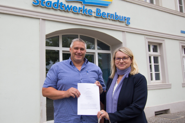 Auch in der kommenden Saison gehören die Bernburger Stadtwerke zu den Hauptsponsoren des SV Anhalt. Ulrike Mathis, Geschäftsführerin der Stadtwerke, unterzeichnete gemeinsam mit Frank Conrad, Vorsitzender des Förderkreises Anhalt Bernburg e.V., den Sponsoringvertrag.