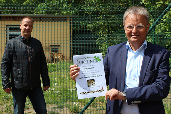 Auch die Bernburger Stadtwerke zeigten ihre Hilfsbereitschaft. Für 1.000 Euro übernehmen sie für ein Jahr die Patenschaft für die beiden Geparden-Damen, die seit 2006 und 2016 im Bernburger Tiergarten heimisch sind.