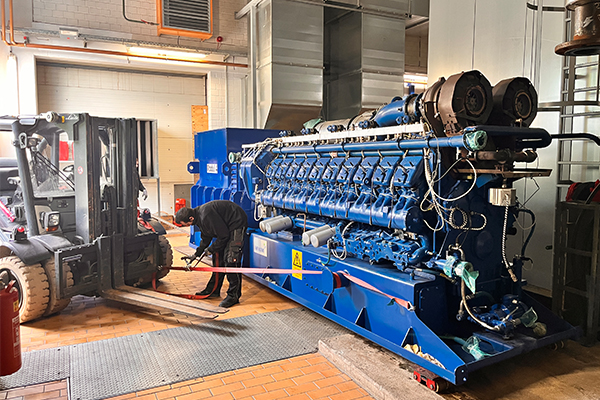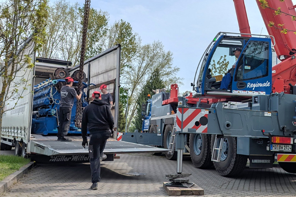 Auf dem Gelände des Blockheizkraftwerkes (BHKW) der Stadtwerke Bernburg in Friedenshall hat vergangene Woche eine imposante Schwerlastaktion stattgefunden. Mit großem Aufwand wurde das sogenannte Modul 4 per Kran und Tieflader aus seiner bisherigen Position ausgehoben und in eine benachbarte Halle zur Zwischenlagerung gebracht. Das rund 20 Tonnen schwere Aggregat bleibt unangetastet – erneuert wird ausschließlich die umgebende Anlagentechnik inklusive Abgassystem.
