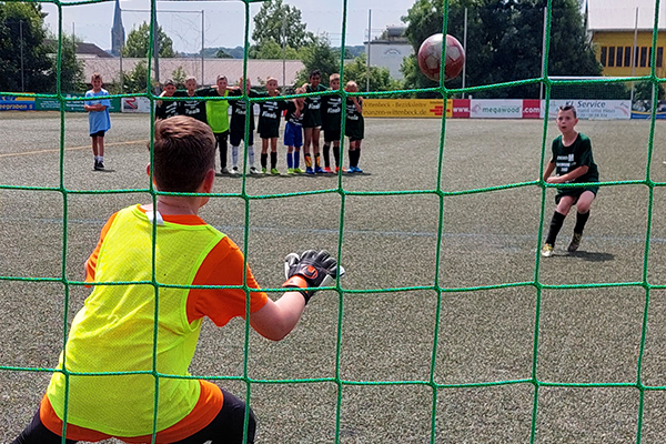 Im zweiten Halbfinale standen sich die Grundschulen „Weißer Garten“ aus Hargerode und die Grundschule Großkorbetha gegenüber. Auch hier musste nach einem 1:1 das 9 Meter Schießen über den Sieg entscheiden. Mit einem 2:1 erkämpfte sich die Grundschule „Weißer Garten“ den Sieg und damit den begehrten ENERGY-M Wanderpokal.